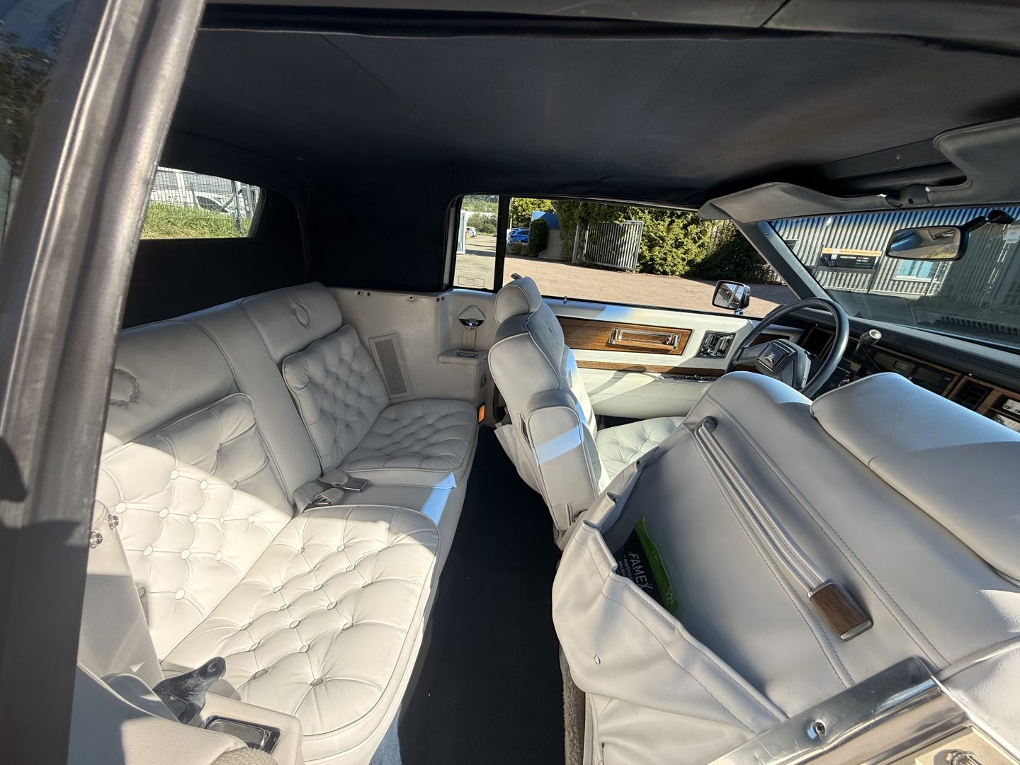 Nirgends ist Verschleiß zu sehen im Innenraum. Das weiße Ledergestuhl,- Cadillac eben, sieht aus als noch nie jemand darauf gesessen hatte. Beste Qualitat.